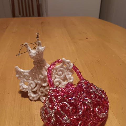 Käyttämätön laukkukoukku ja nyörikiristeinen säilytyspussi sille.