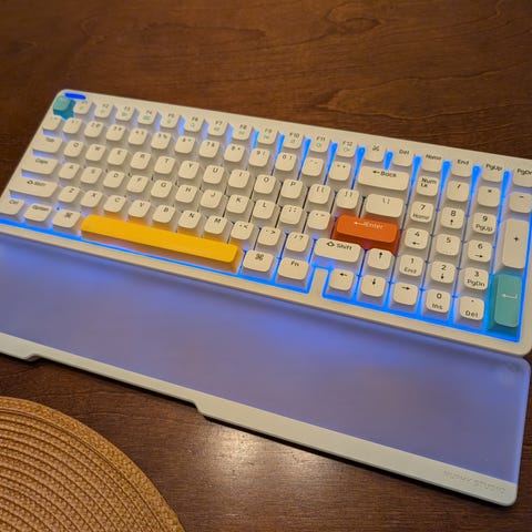 Hyvässä kunnossa oleva NuPhyn kaunis Air75 (versio 1) low profile mekaaninen näppäimistö. Näppiksessä tällä hetkellä punaiset lineaariset kytkimet, mutta halutessaan ne saa vaihdettua ruskeisiin (tactile) tai sinisiin (clicky). Mukava näppäintuntuma ja kaunis setti, johon saa vaihtuvan ilmeen toisilla NupHyn PBT-näppäinhatuilla.