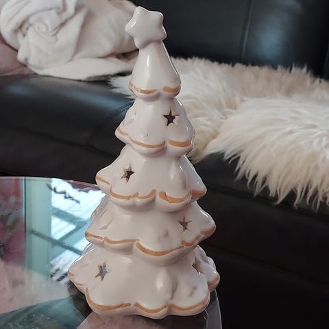 Myynnissä kuvien ehjä sekä siisti keraaminen tuikkukuusi. Korkeus on 22 cm, halkaisija alhaalta 16 cm. Lähetän ja kulut ovat 8 e, pakkaan hyvin. Kulkeutuu myös Turkuun ilmaiseksi