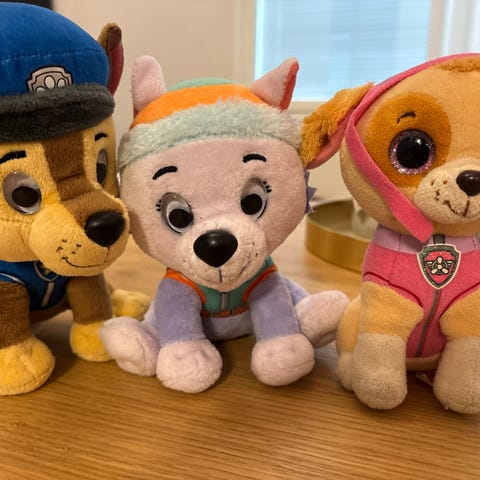 Ryhmähau pehmolelu, tonttulakit päässä. Toisessa piirretty silmään joten saa kaupan päälle, voi lähteä putsaamalla.