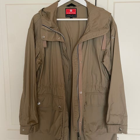 Myydään kerran kokeiltu parka mallinen, tummanruskea takki. Pintamateriaali vettä hylkivä, softshell. Irrotettava huppu, sekä säädettävät hihansuut.