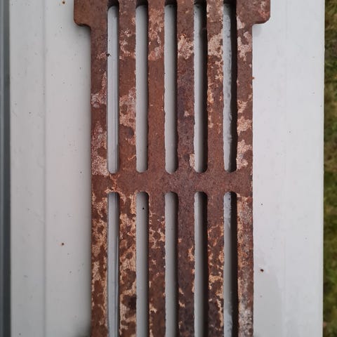 Kehyksen ulkomitat ovat 175 x 420 mm ja arinan 110 x 395 mm.