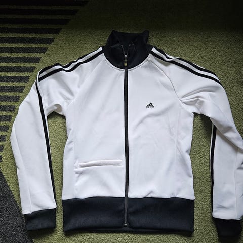 Myydään hyväkuntoinen Adidaksen valkoinen verkkatakki koossa 36.