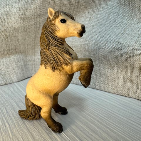 Elämää nähneet kaksi Schleich shetlanninponia. Maalikulumaa on siellä täällä ja toinen yksilö maalattu. Siinäkin kulumaa. Katso kuvat.