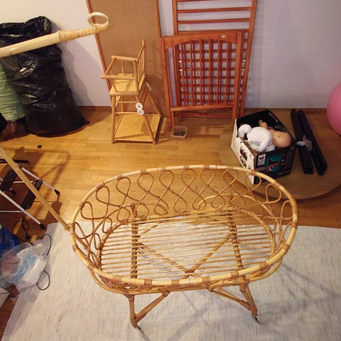 Rottinkinen korisänky vauvalle. Vanha mutta ehjä ja siisti. Mukaan saa itse leikatun patjan, päällinen ei kuulu kauppaan.