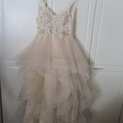 Myydään kaunis kimalteleva shamppanjan värinen tanssimekko/iltapuku💖. Koko 32, (sopii 34-36). Ollut 175 cm pituisella tanssijalla, mutta voi myös lyhentää helposti tylliä leikkaamalla. Mukaan saa halutessaan erillisen vannehameen, ei ole kuvissa.