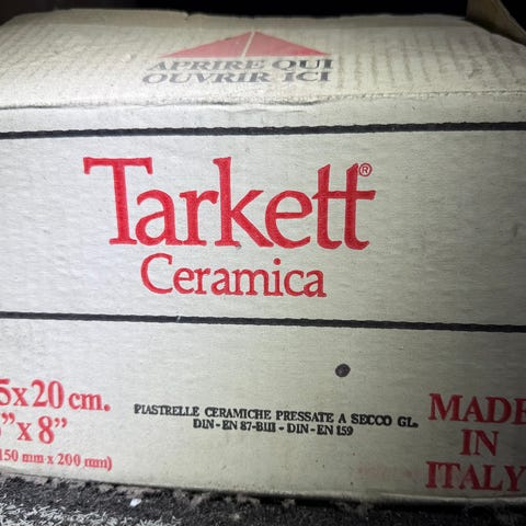 Marazzi 25x38 cm seinälaatta. Vaalea harmaa seinälaatta, italialainen. 2 laatikkoa (-1 kpl)