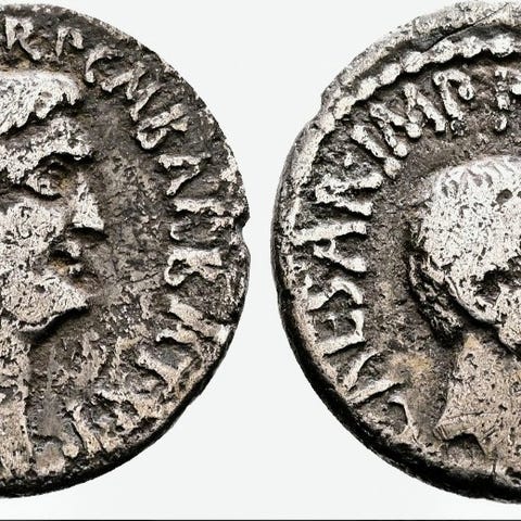 Tämä on yksi tunnetuimmista Rooman tasavallan viimeisistä rahasarjoista – lyöty vain hetkeä ennen Antoniuksen ja Octavianuksen välistä yhteenottoa.