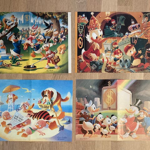 Myytävänä Aku Ankka -lehdessä ilmestyneitä Don Rosan piirtämiä julisteita