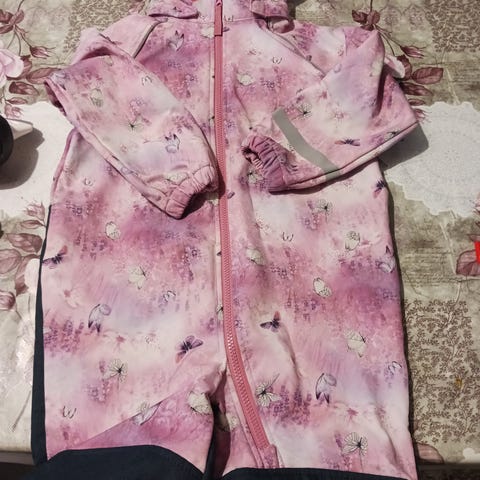 Uudenveroinen softshell haalari koko 116. Heijastin narut edessä ja takana