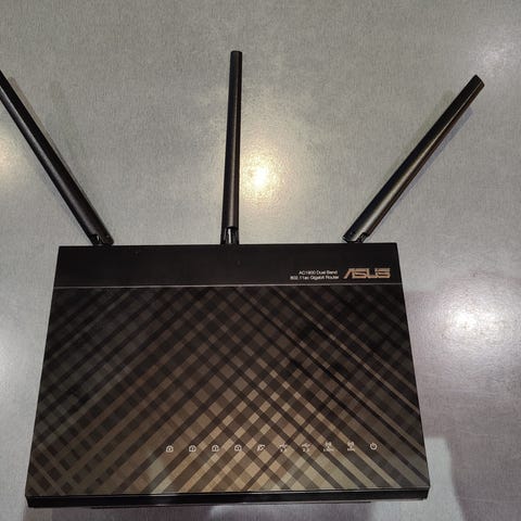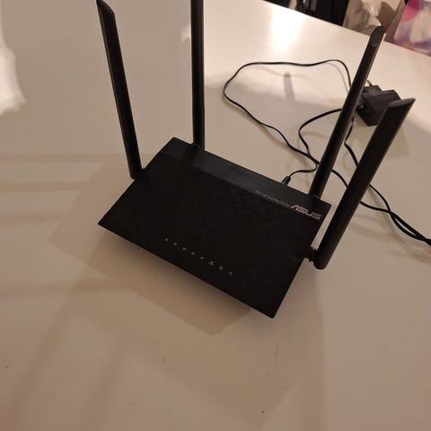 Asuksen perusreititin. Toimivana irroitettu uuden tieltä. Virtakaapeli ja verkkopiuha mukaan.