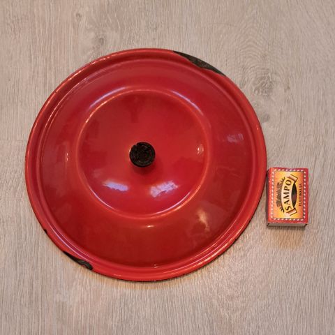 Kivat vanhat emaloidut kattilan- tms. kannet x2. Sinisen kannen halkaisija 20 cm ja punaisen kannen sisäreunan halkaisija 17,5 cm. Hyvä käyttökunto, patinaa paikoin. Yhteishinta. Nouto tai postitus.