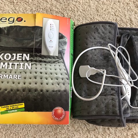 Prego jalkojen lämmitin, harmaalla pehmeällä kankaalla. Lämmitin on suunniteltu jalkojen lämmittämiseen ja siinä on säädettävä ohjain, jossa on useita lämpötilatasoja. Kuin uusi, muutaman kerran kokeiltu.