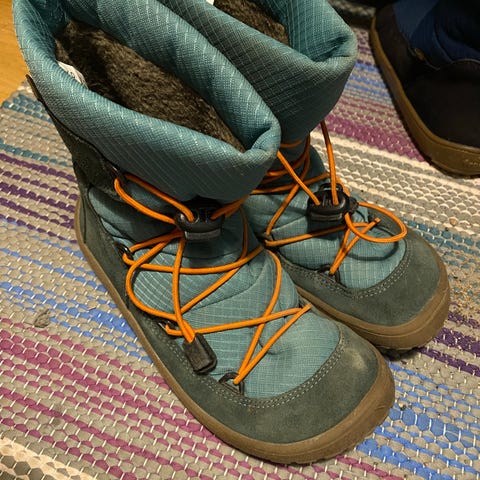 Froddo barefoot tex suede mokkanahkaiset talvisaappaat villavuorella. Olleet käytössä yhden talven ns. parempina kenkinä.