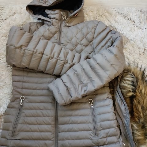 Inari untuva takki. Ihanan lämmin ja kevyt. Huppu on kiinteä, vetoketjulliset taskut. Kokomerkintä 38, mutta minusta pienempi eli 36). Hihoissa on 2 pientä kulumista, mutta ne eivät vaikuta mitenkään. Muuten tosi hyvä kunto!