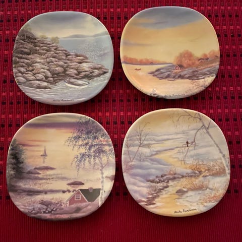 4kpl arabia vuodenajat seinätauluja. Kaikki kerralla. Heikkilänkankaalla. Kissatalous.