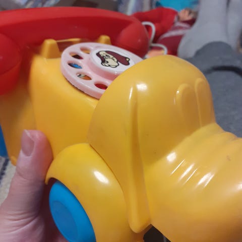 🍁 Myynnissä kuvassa näkyvä leikki puhelin. Kun pyörittää tuota punaista osaa niin pitää ääntä.