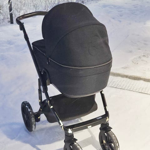 Nordbaby lastenvaunut, harmaa väri, koostuu istuinosasta ja kantokopasta. Materiaalina käytetty kestävää kangasta. Sopii vastasyntyneestä eteenpäin. Varustettu säädettävällä aurinkosuojalla ja turvavyöllä.