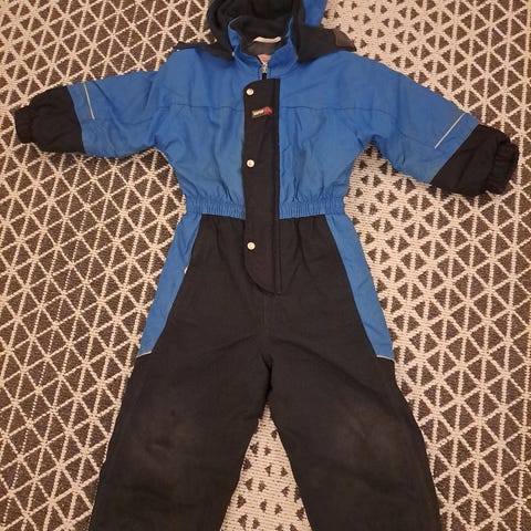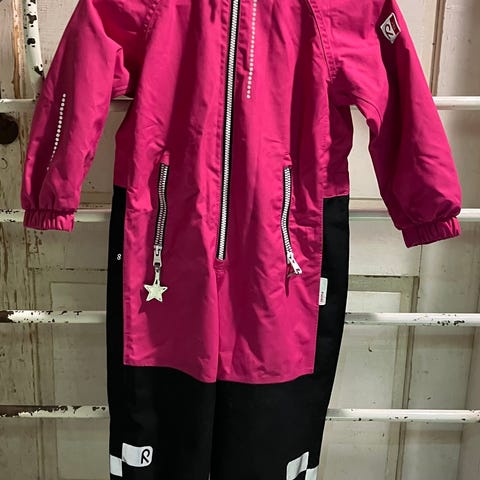 Reima lasten haalari, koko 104 cm, väriltään musta. Toisessa polvessa pienen pieni reikä, voi hyvin suojata esim kangaspaikalla.