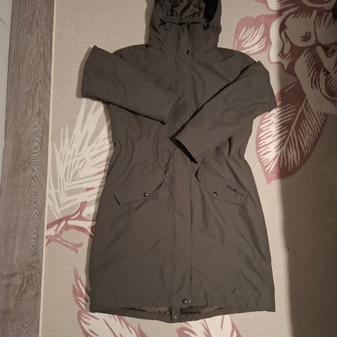 Lämmi ,tikkivuorella ja flanellilla. Korkea vedenpitävyys. Irrotettava huppu ja turkisreuna