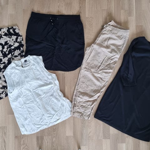 Naiselle vaatepaketti kokoa L-40-42. Kaikki hyvässä kunnossa.