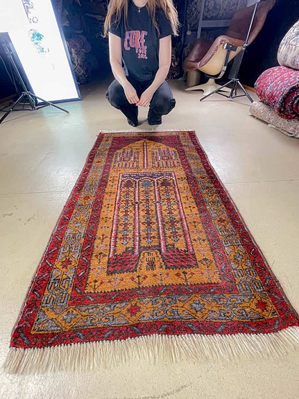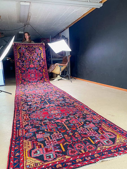 Kauniin kirkkaana säilynyt väriteema ja perinteinen persialainen Bijar-kuviointi.