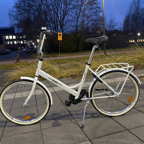 Helkama Jopo 1-vaihdetta kaupunkipyörä, runkokoko 45 cm, rengaskoko 24 tuumaa, jäkäli-malli. Pyörä on unisex-mallinen ja soveltuu kaupunkiajoon sekä taittopyöräkäyttöön.