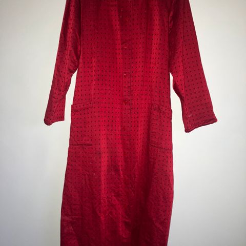 Vanhanajan aamutakki. Pieni lähes huomaamaton reikä helmassa. Ks kuva.