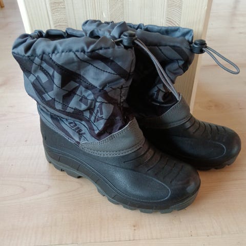 Mustat kelkkailuun ja ulkoiluun lumisissa keleissä sopivat kengät, olisko nimi Srctix. Kengissa irroitettava huopasisäkenkä. Karhea pohjakuviointi, koko 46.
