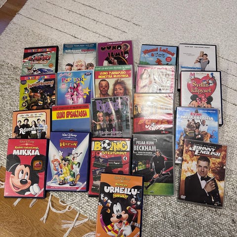 Kokoelma DVD-elokuvia, sisältäen useita eri nimikkeitä ja genrejä. Elokuvat ovat fyysisessä DVD-muodossa, eri julkaisijoilta ja eri vuosilta. Sopii DVD-soittimille ja tietokoneille, joissa on DVD-asema. Vähintään 5 elokuvaa per ostaja. 2e/kpl. Iso Simpson boksi 5e. Toimivuustakuu. Mission impossible boksi 5e