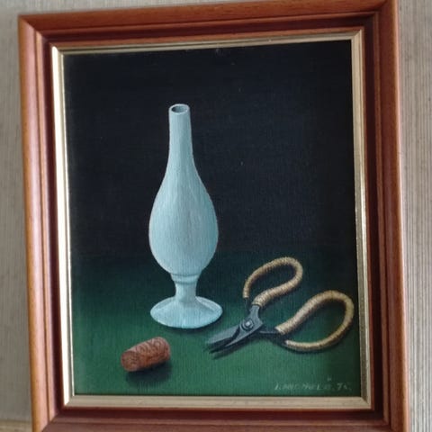 Paul Pelto (Ahopelto) asetelma, öljyvärityö. Tarkasti tehty taulu upeissa kehyksissä. Koko 40X44cm. kehyksineen. Ilmainen toimitus lähialueelle ja Helsinkiin sopimuksen mukaan. Voin myös postittaa taulun, postimaksu pitää selvittää.