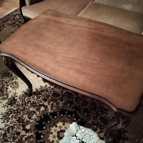 50-luvun pöytä vedettävällä lisätasolla. Leveys 116 cm, syvyys 56 cm, korkeus 50 cm. Lisäosan leveys 34 cm, syvyys 43 cm.