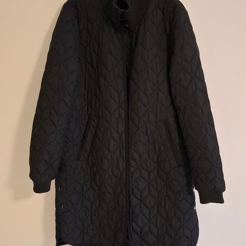 Ilse Jacobsen Coat on musta naisten ulkotakki, koko 38. Takki on tikattu ja siinä on vetoketjukiinnitys sekä sivuilla napilliset halkiot. Takki on hartioilta istuva ja vyötäröltä väljän mallinen.