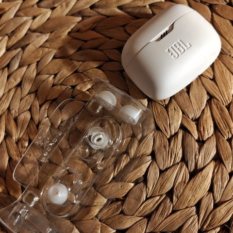 JBL Wave Beam 2 langattomat kuulokkeet valkoisena. Kuulokkeet tarjoavat aktiivisen melunvaimennuksen ja puhtaan äänenlaadun. Äänenlaatua voi säätää JBL sovelluksella.