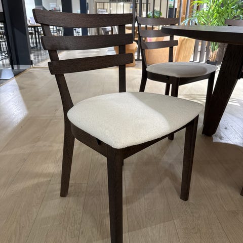 Valkoöljytty tammi, irrotettavat istuintyynyt kankaalla.