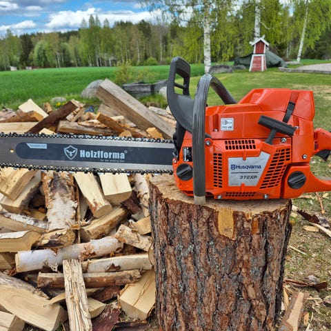 Tätä ei kannata verrata 50-kuutioisiin sahoihin, koska puhutaan isosta 94-kuutioisesta sahasta. Erittäin hyvä kampe vaikka sahalaitokseen.