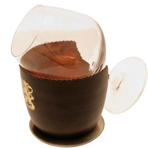 Konjakkilämmitin, jossa kelo alusta. Lasia pitää tinatyttö. Setti sisältää lasin ja tuikun. Konjakinlämmitin on Designer Timo Kyllösen suunnittelema ja hauska lahjaidea konjakin ystävälle.