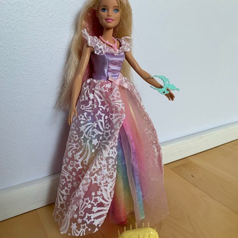 Barbie Dreamtopia Royal Ball Princess, hyväkuntoinen. Mukaan tulee taikasauva, 2 tiaraa, 2 kaulakorua ja hiusharja.