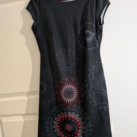 Siisti ja vähällä käytöllä ollut Desigual mekko, väriltään kirjava, naisten koko M. Mekossa on monivärinen kuviointi ja musta takaosa. Materiaali sisältää elastaania, mikä lisää joustavuutta. Soveltuu hyvin esim pikkujouluihin.