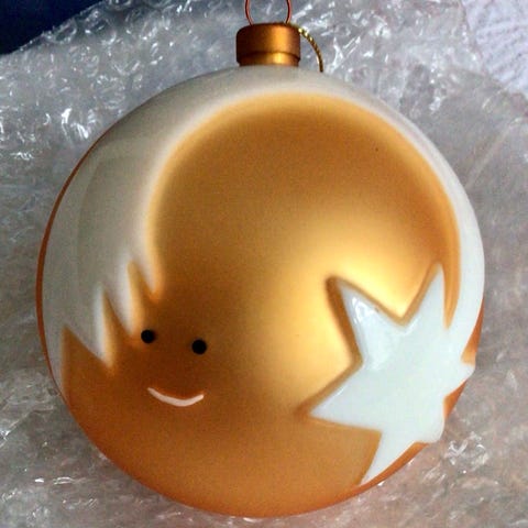 Käyttämätön ja omassa rasiassaan säilytetty Alessin nelikulmainen joulupallo. Käsintehty.