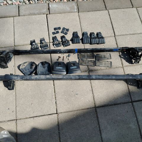 Mont Blanc-kattotelineet. Sopivuus esim. 2000-luvun alun Mazda 323 ja 6 sekä Ford Mondeo, Fiat Stilo, Panda, Peugeot 307, 607, Nissa Primera Wagon, Reanault Megane II, Scenic II, Citroen C5. Hyväkuntoiset ja toimivat. Vain nouto ja vain käteismaksu.