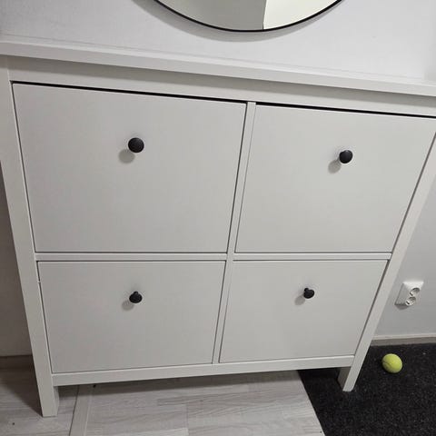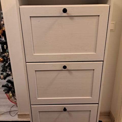 Myydään Ikean Hemnes kenkähylly. Yhden vetimen ruuvi puuttuu (mutta Ikeasta saa uuden).