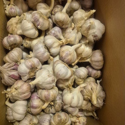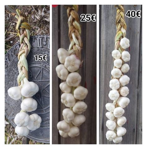 Luomutavalla (ei sertifioitu) kasvatettua talvivalkosipulia. Voit syödä pois ja saada parhaan hyödyn tai laittaa maahan kasvamaan ja saat hyödyn myöhemmin! Enimmäkseen irtokynsiä ja letittää tätä ei voi enää missään nimessä. Tämän syksyn satoa.