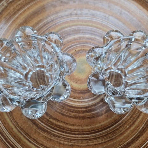 Myydään 2 kpl Ranskalaisia Reims vintaga- kynttilänjalkoja. Korkeus 5,5cm. Ehjät.