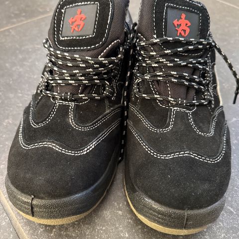 Turvakengät, koko 42, musta väri. Kengät ovat valmistettu kestävistä materiaaleista, joissa on tarrakiinnitys ja rei'itetty päällinen ilmanvaihtoa varten. Sopivat monipuoliseen käyttöön.