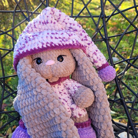 Tämä suloinen lumiukko virkattu käsityönä pehmeästä langasta.