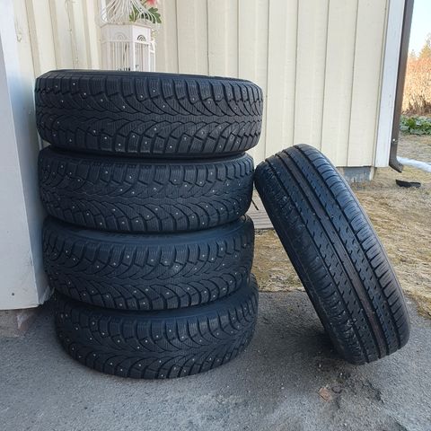 Opel Astra G -98 kitkarenkaat (4 kpl) alumiinivanteilla, koko 195/60R15. Renkaiden kulutuspinta näkyy kuvissa. Käteismaksu, vain nouto - ei varauksia