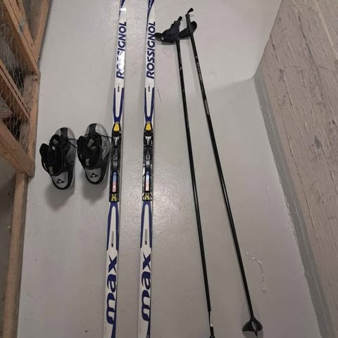 Myydään hyvin pidetty ja säännöllisesti huollettu luisteluhiihtopaketti. Käy noin 160-175 cm ja 55-75kg hiihtäjälle. SNS-side. Toisen sauvan tarrakiinnitys hieman heikko.
