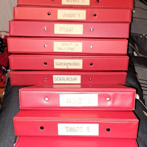 PELIMANNISÄVELMIÄ Etelä-Karjalasta, PELIMANNISÄVELMIÄ III FAZER ja PELIMANNISÄVELMIÄ FAZER. Punakantinen ja vihreäkantinen ovat vuodelta 1973, oranssikantinen vuodelta 1971 (Offset Oy HKI 1975). Vihkot käytössä jonkin verran kuluneita ja jokaisen takakannessa on hanuristi-isäni omakätinen omistuskirjoitus. Oranssissa vihkossa lyijykynämerkintöjä esim DTuuri. Kaikki yhteensä 10 e. Nouto tai lähetys. Lähetyskulut ostajalle. Huom ! Muitakin kansanmusiikki/vanha tanssimusiikki/hanurinsoitto-opas - julkaisuja myynnissä !