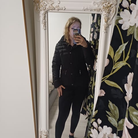 Tosi vähän pidetty hupullinen talvitakki. Kullanvärinen kaksisuuntainen vetoketju ja napit, kaksi vetoeketjullista taskua. Hupussa myös napit, mitkä avaamalla hupusta saa suojaavamman. Materiaali hiukan kiiltävää liukaspintaista materiaalia. Malli hiukan vartaloamyötäilevä. Tyylikäs ja lämmin takki!